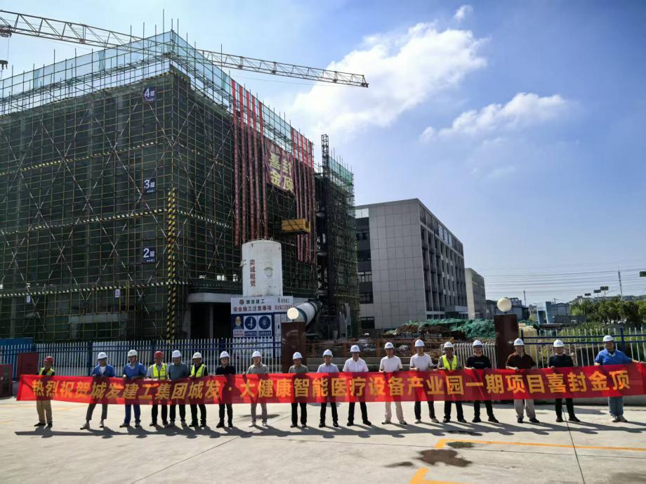 2025年9月23日,城發·大健康智能醫療設備產業園一期項目順利完成主體結構封頂。磁湖高新公司黨委委員、副總經理胡曉明出席封頂儀式,與項目各參建單位代表共同見證這一關鍵節點。